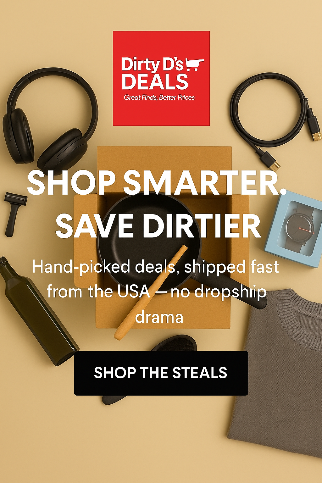 At Dirty D’s Deals, we believe everyone deserves a good deal. That’s why we handpick quality items across every category and deliver them straight to your door without the retail markup.